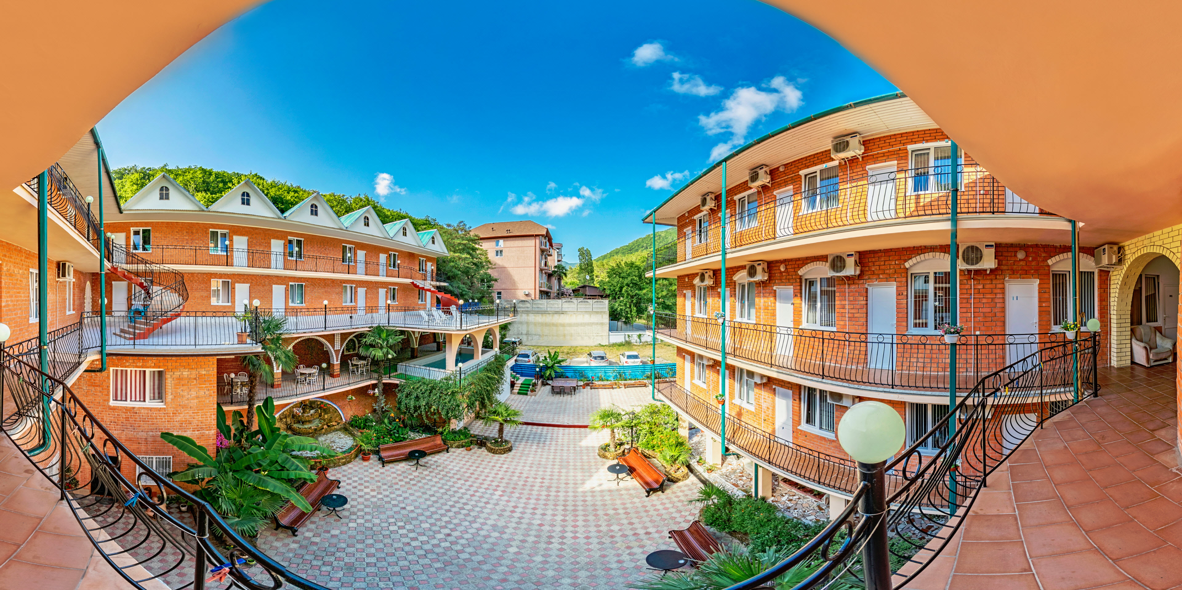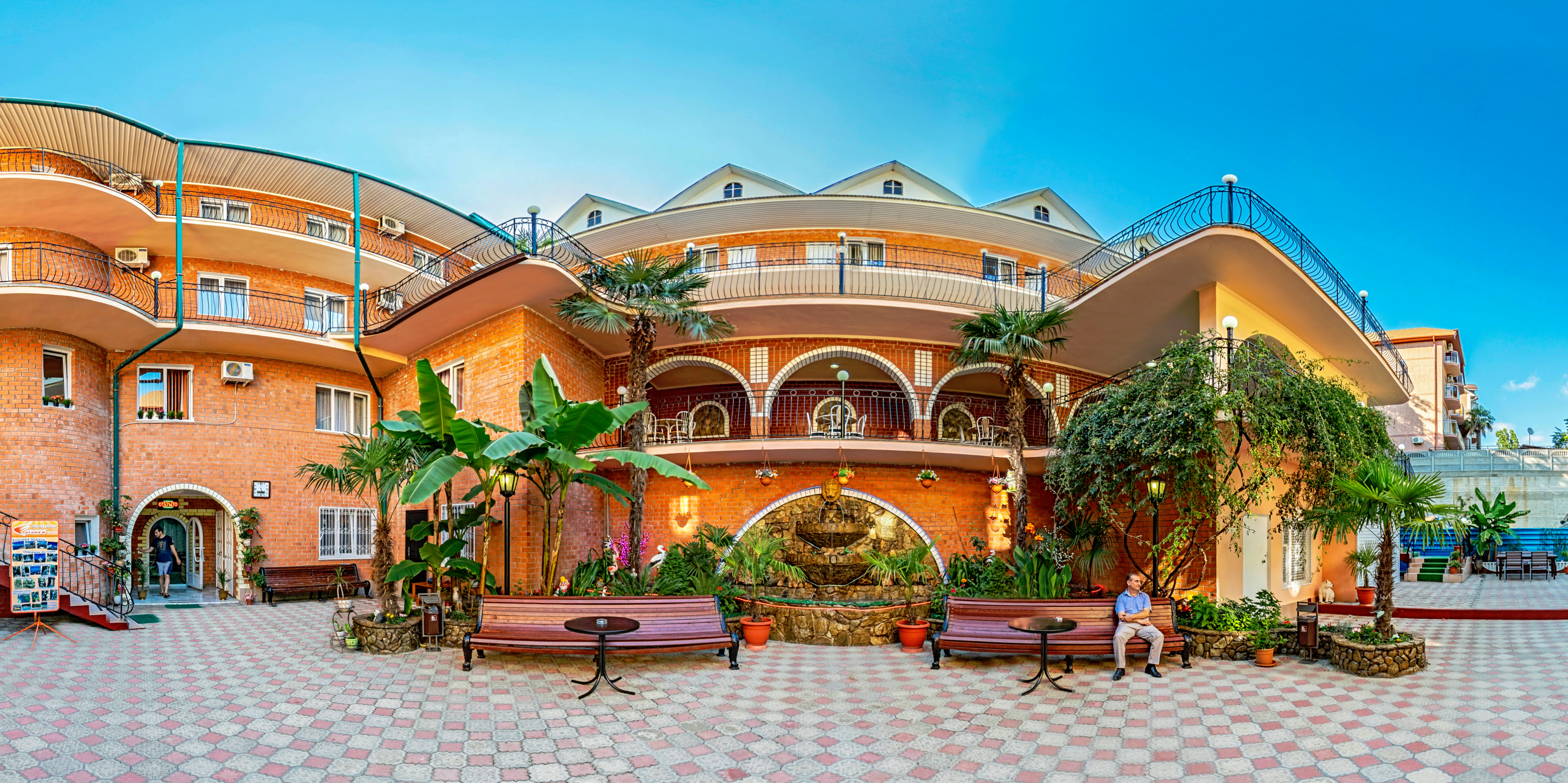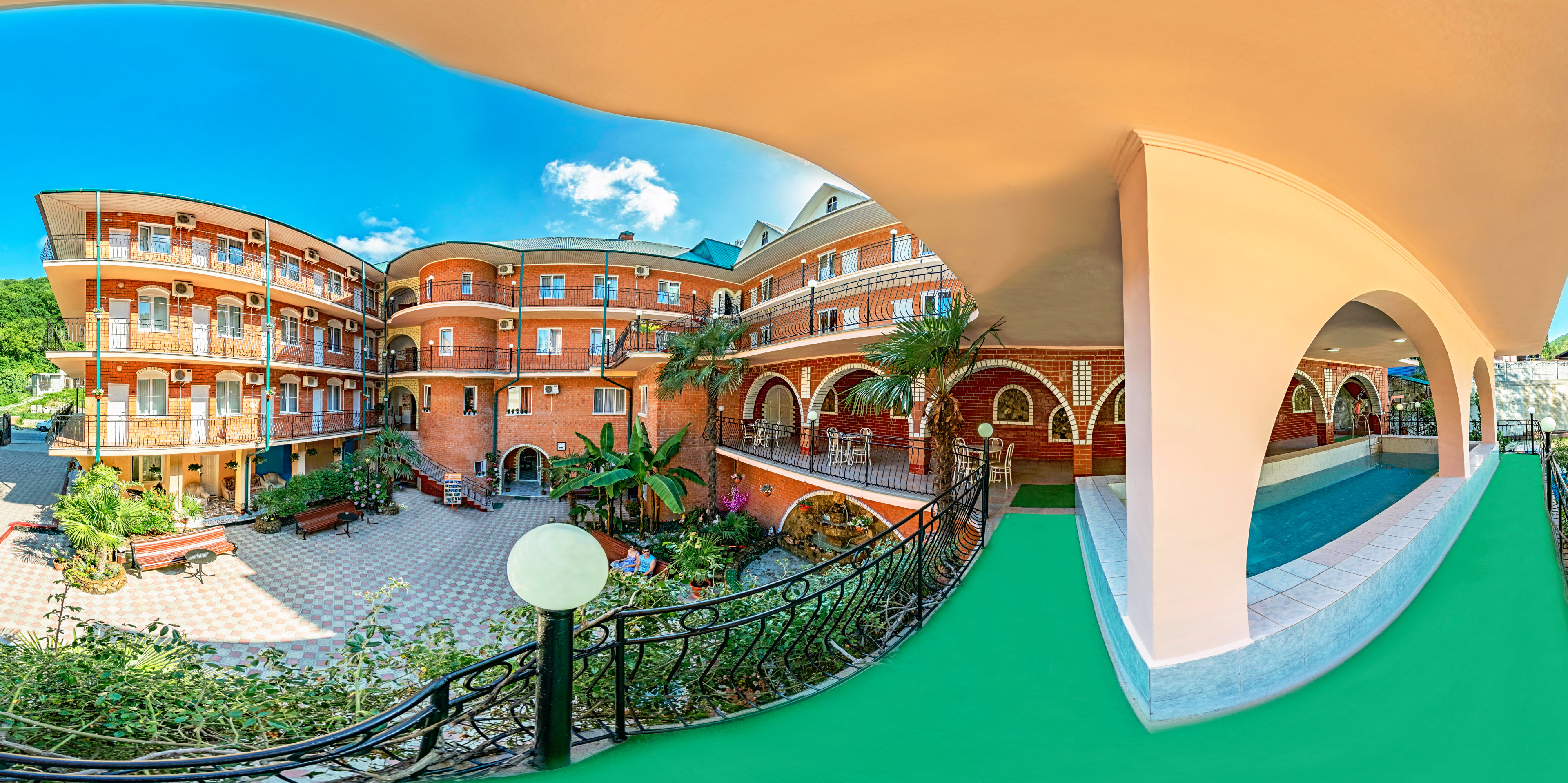 Отель расположен в заповедной части курорта Лазаревское, входящего в состав Большого Сочи, в заповедном Свирском ущелье. К услугам отдыхающих - просторный внутренний дворик с пальмами и декоративным фонтаном из натурального камня, крытый большой БАССЕЙН, бильярд и терраса с шезлонгами для загара. Бесплатный интернет - wi-fi.