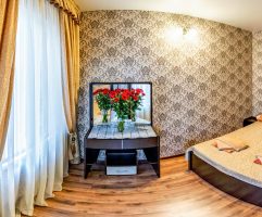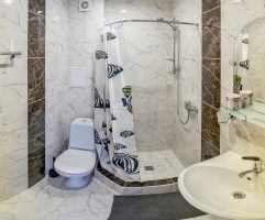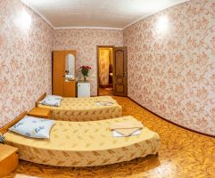 Номера стандарт 2-3-4х местные – санузел с душем, функциональная мебель, телевизор, холодильник и вентилятор либо кондиционер.